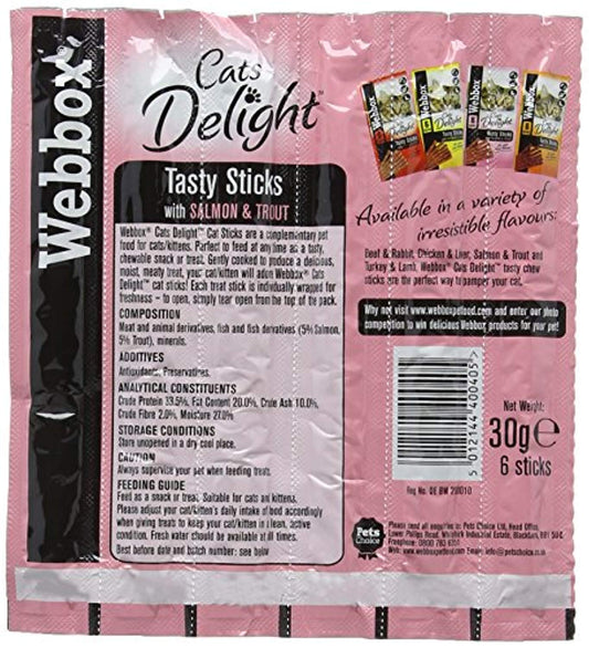 Webbox Delight Cat Sticks Salmon and Trout, 30 g, Pack of 12