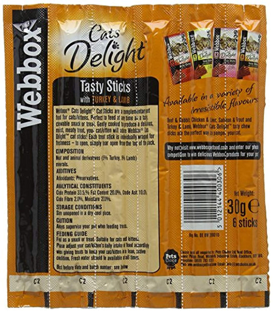 Webbox Delight Cat Sticks Turkey and Lamb, 30 g, Pack of 12
