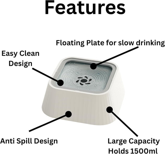 Slow Drinking Dog Water Bowl - Floating Lid To Prevent Choking and Vomiting No Spill Design for Messy Drinkers, Reduces Wet Floors, Ideal for Home and Travel