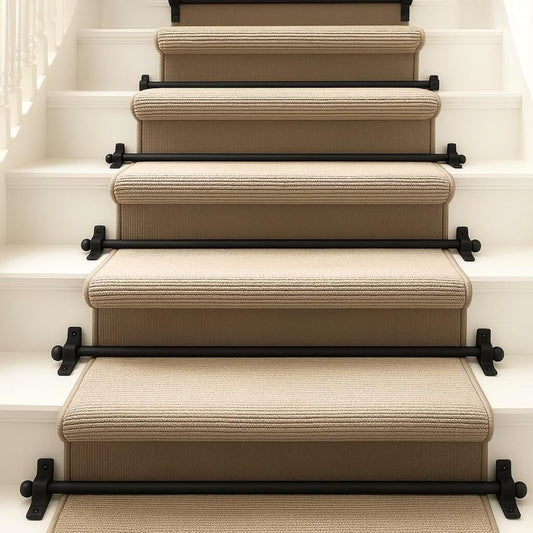 Carpet Stair Rods (Pack of 13) Decorative Black Metal Stair Rods with Round Finials and Screws Fits Carpet Runners Up to 70cm Easy to Cut and Install UK