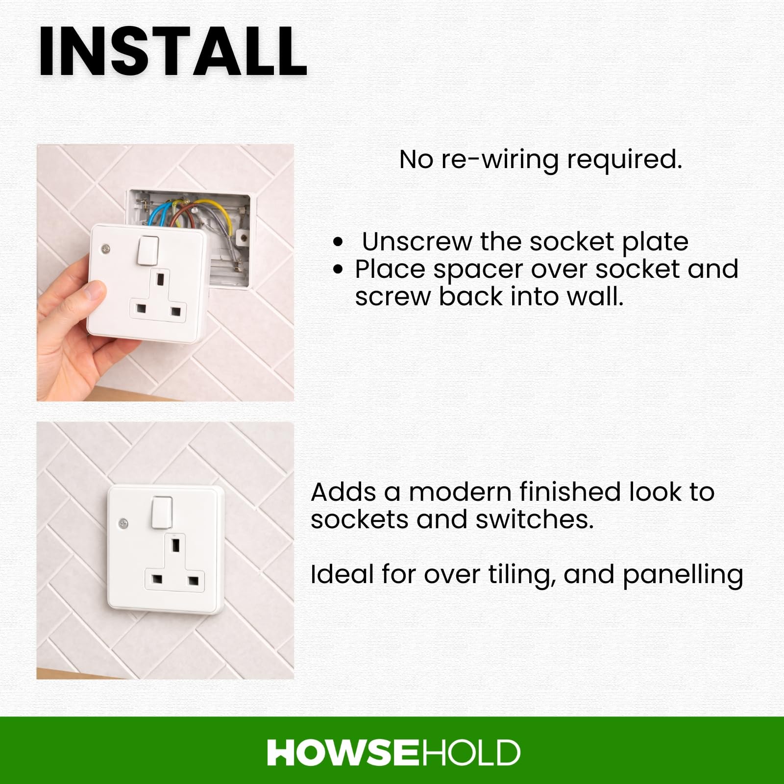 - EASY INSTALLATION: Simply fit between the wall box and socket faceplate to bring the socket flush with the wall surface, no special tools required