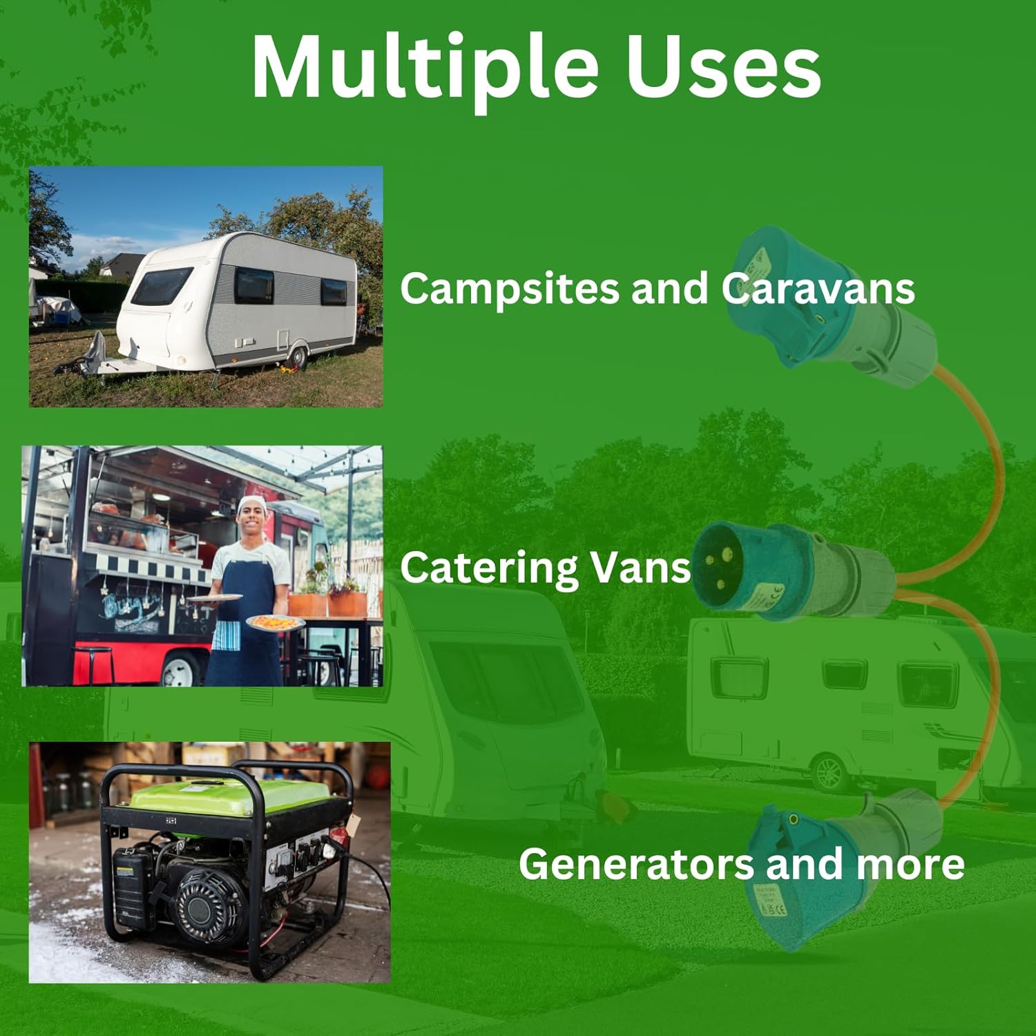- Ideal for Camping and More - Designed for caravans, motorhomes, campervans, catering trailers, and outdoor events. This 3 pin 16 amp splitter cable ensures stable power distribution for lighting, fridges, heaters, and other essential gear.