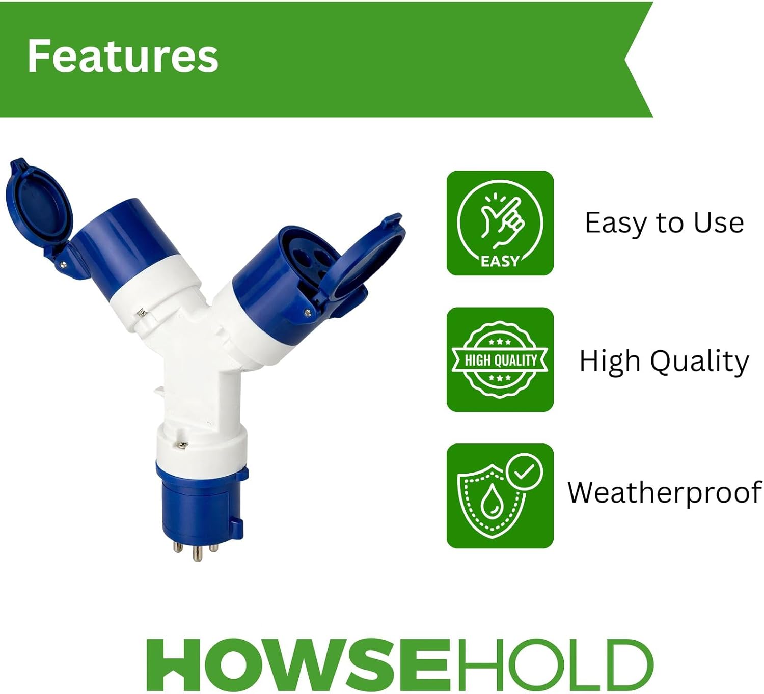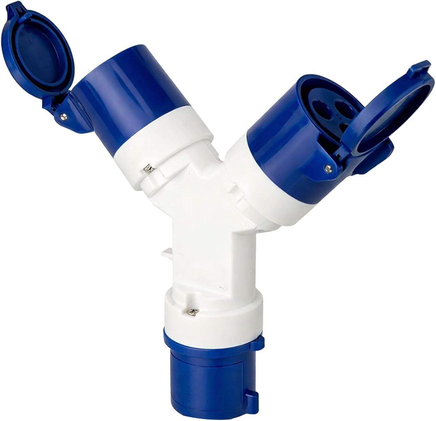 16A Caravan Hook Up Splitter Cable, 2 Way Electric Adapter for Caravan, Motorhome & Campervan, 16 Amp Camping Mains Power Splitter for Campsite Connection