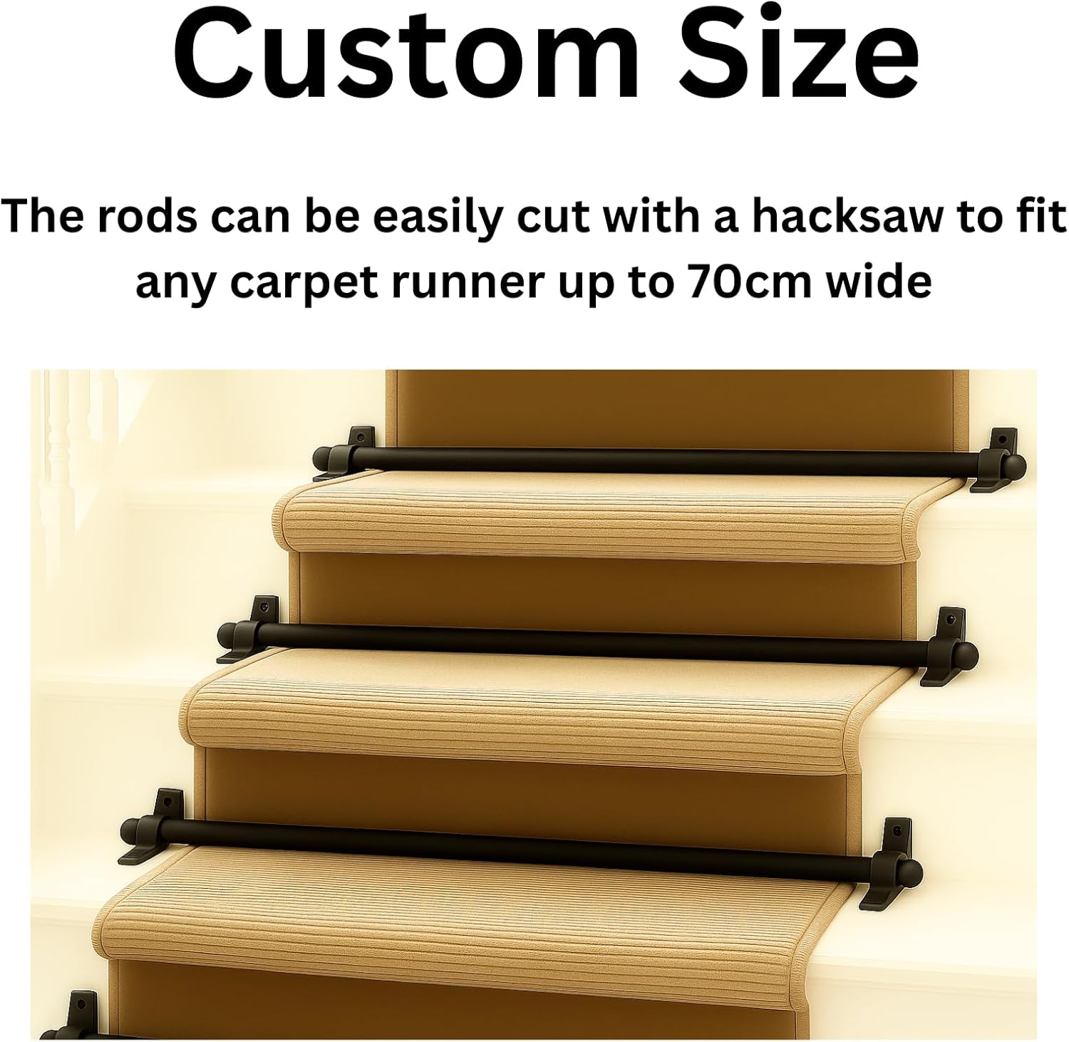- Complete Set - Each set includes 13 rods (73cm long, 10mm diameter), 26 finials (2 per rod) and screws, giving you everything needed to install across 13 steps. Ideal for use on straight staircases with runner carpets.