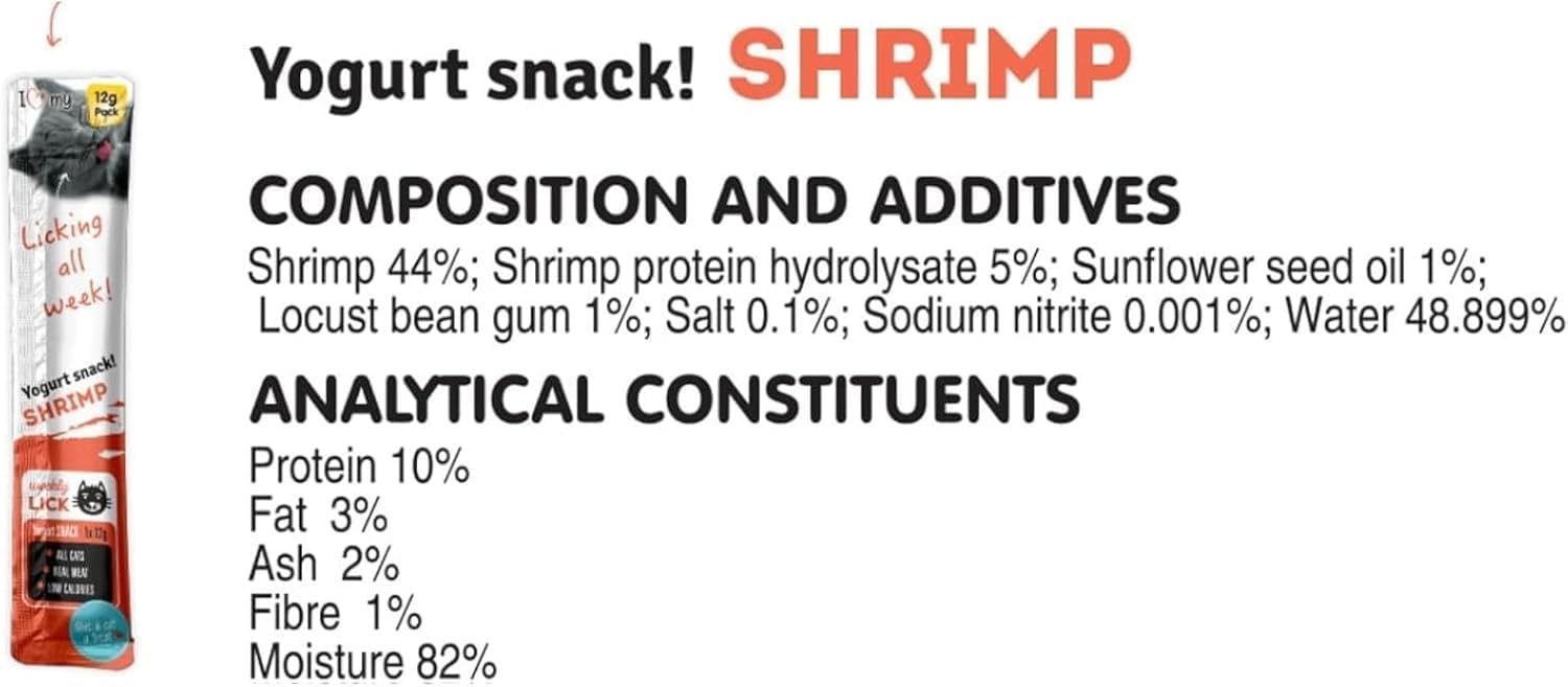 - Mixed Flavour Delight 25 Pack: Spoil your cat with 25 creamy yoghurt-based lickable treats from I Love My Pet. Each 12g pouch delivers a luxurious experience packed with real meat. Flavours include 6 Chicken, 7 Tuna, 7 Salmon, and 5 Shrimp to keep mealtime exciting and satisfying.