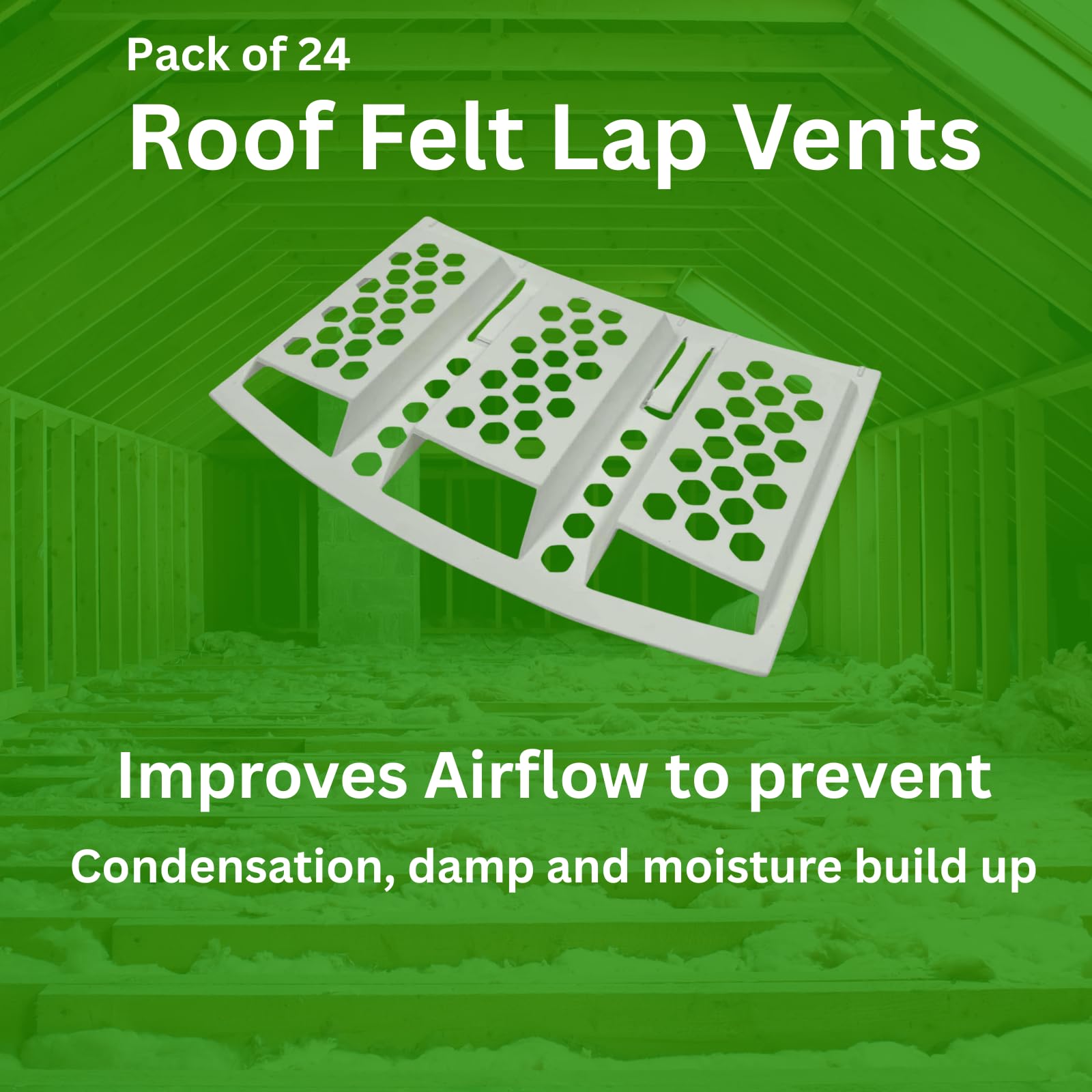 - Included: Pack of 24 felt lap vents designed specifically to improve loft and attic ventilation. These vents increase airflow through the roof felt laps, helping prevent loft condensation, damp patches, trapped moisture and winter build-up. Ideal for improving overall roof airflow efficiency.